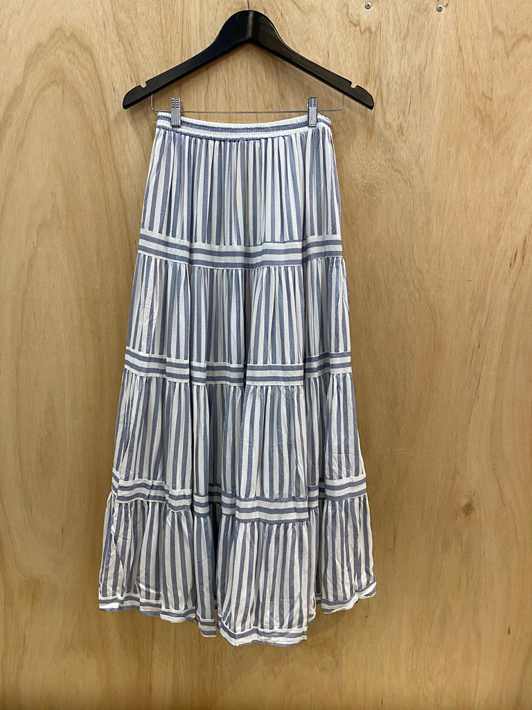 Blue and White striped tiered Maxi Skirt, perfect for the beach!