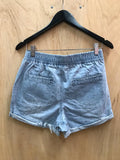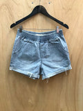 Light weight, washed denim short in light blue. Drawstring and elastic waist. Easy fit.