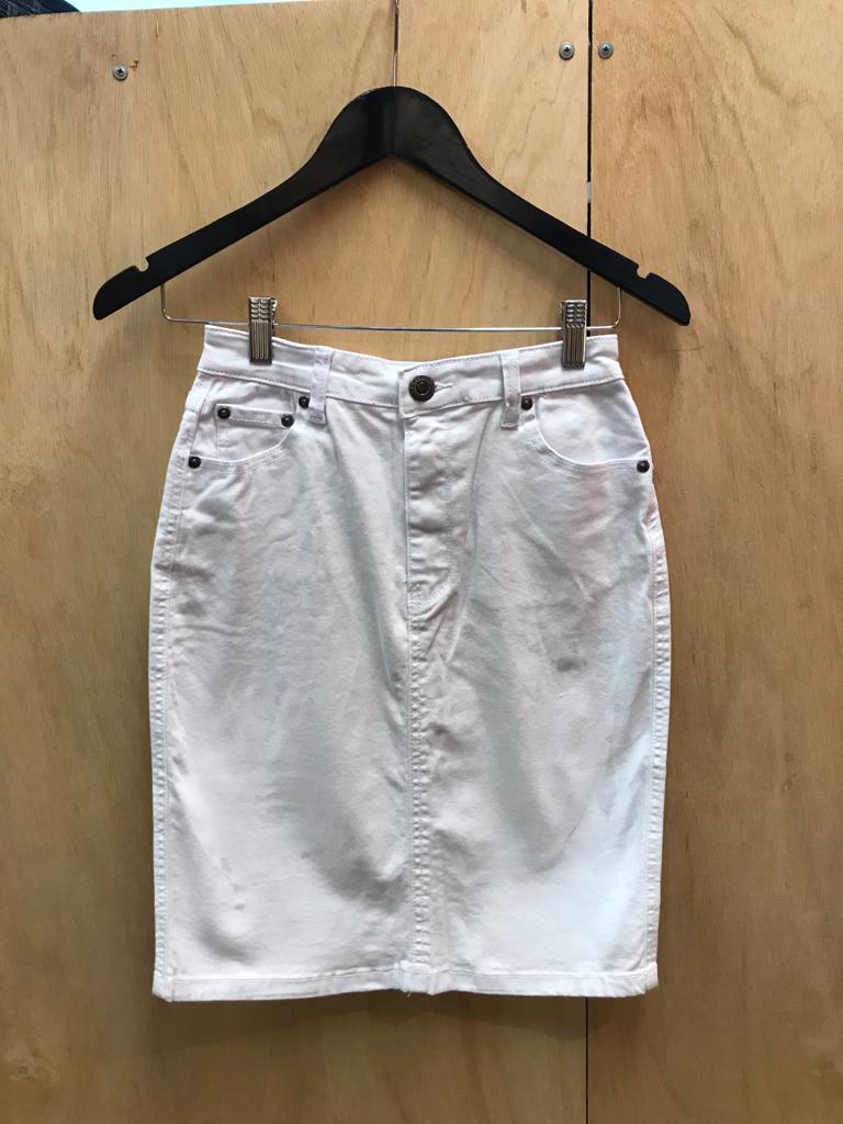 Snow white stretch denim pencil skirt. Classic shape and summer staple.
