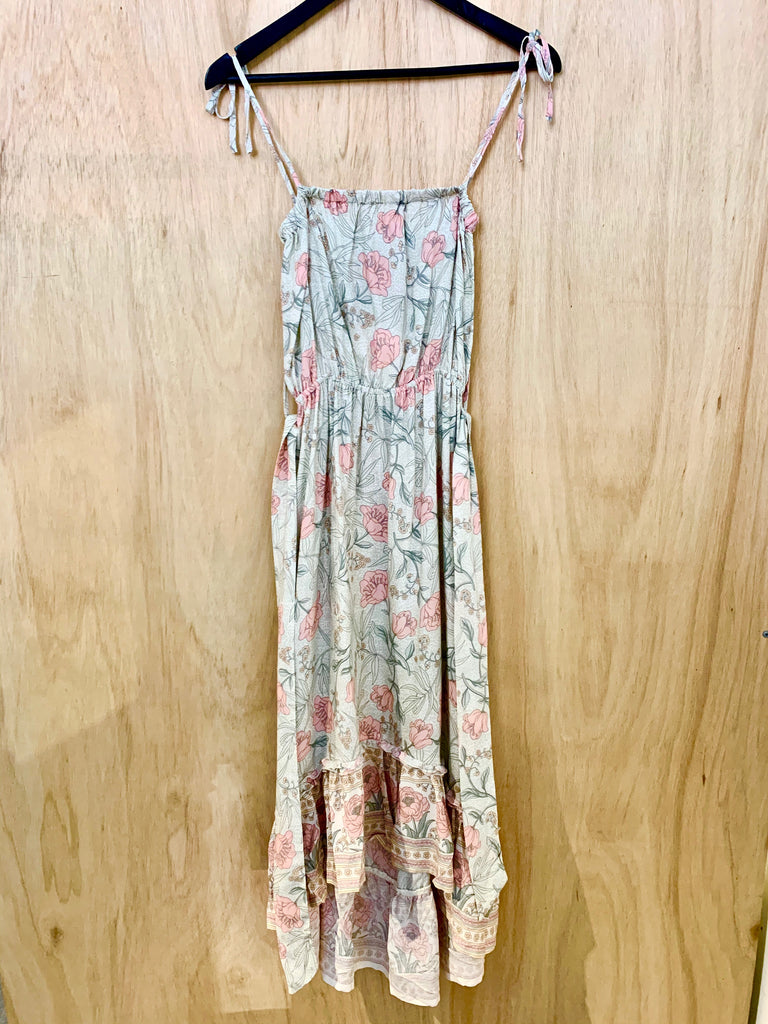 This floral dress features spaghetti straps that are adjustable for the best fit, it also has an elasticated waist and belt that adds a flattering shape to your outfit!