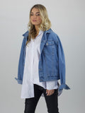 Mid wash denim jacket in a stylish boyfriend fit is an essential to your wardrobe any time of the year