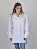 Classy and Chic, you can never go wrong with a white button up shirt for any occasion, with detailed large cuff.