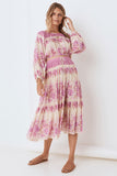 The captivating Coco Lei Skirt with its full elastic waistband finished with a drawstring and bells, is a disarming beauty with a hint of 70's glamour. Crafted in a blend of luxurious organic cotton and sustainably produced, LENZING™ ECOVERO™ Viscose, woven with a fine gold metallic thread to give a gently glistening finish, this divine piece will take you from dancing the streets of Dubrovnik to a casual coffee catch-up with a charismatic and carefree elegance. Pair with our Coco Lei Blouse for a radiant print-on-print combination that will certainly leave all eyes on you, or add a grungy twist and wear with a rocker tee and slides, to add a little sassy style to your Sunday brunch. Designed with cascading gathered tiers and meticulously placement print, this stunning skirt is lined for easy wear and an will be an easy go-to in your wardrobe.