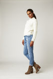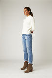 Relaxed boyfriend jeans in distressed denim are an essential for all year round! Pair with a pair of sneakers for a relaxed feel, or with some red lipstick and and a flowing top for a late lunch with friends!
